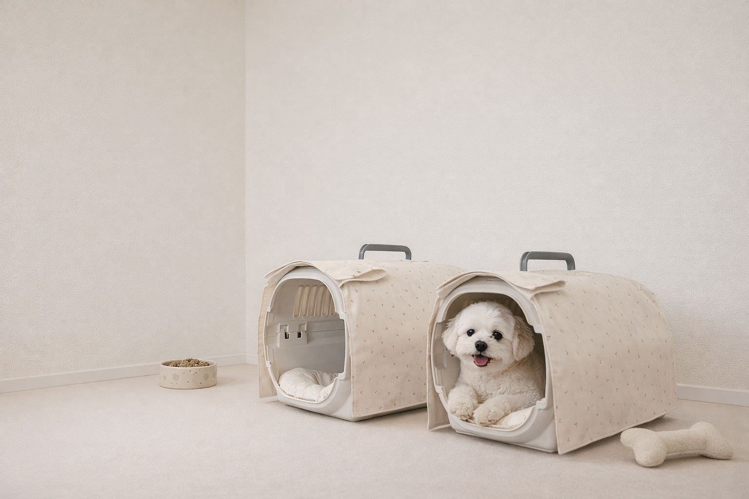 【送料無料】犬・猫用 クレートカバー|かぶせるだけで落ち着く安心空間|綿100%・全5色 4サイズ展開|FIOLY ドット柄(切り返し有)