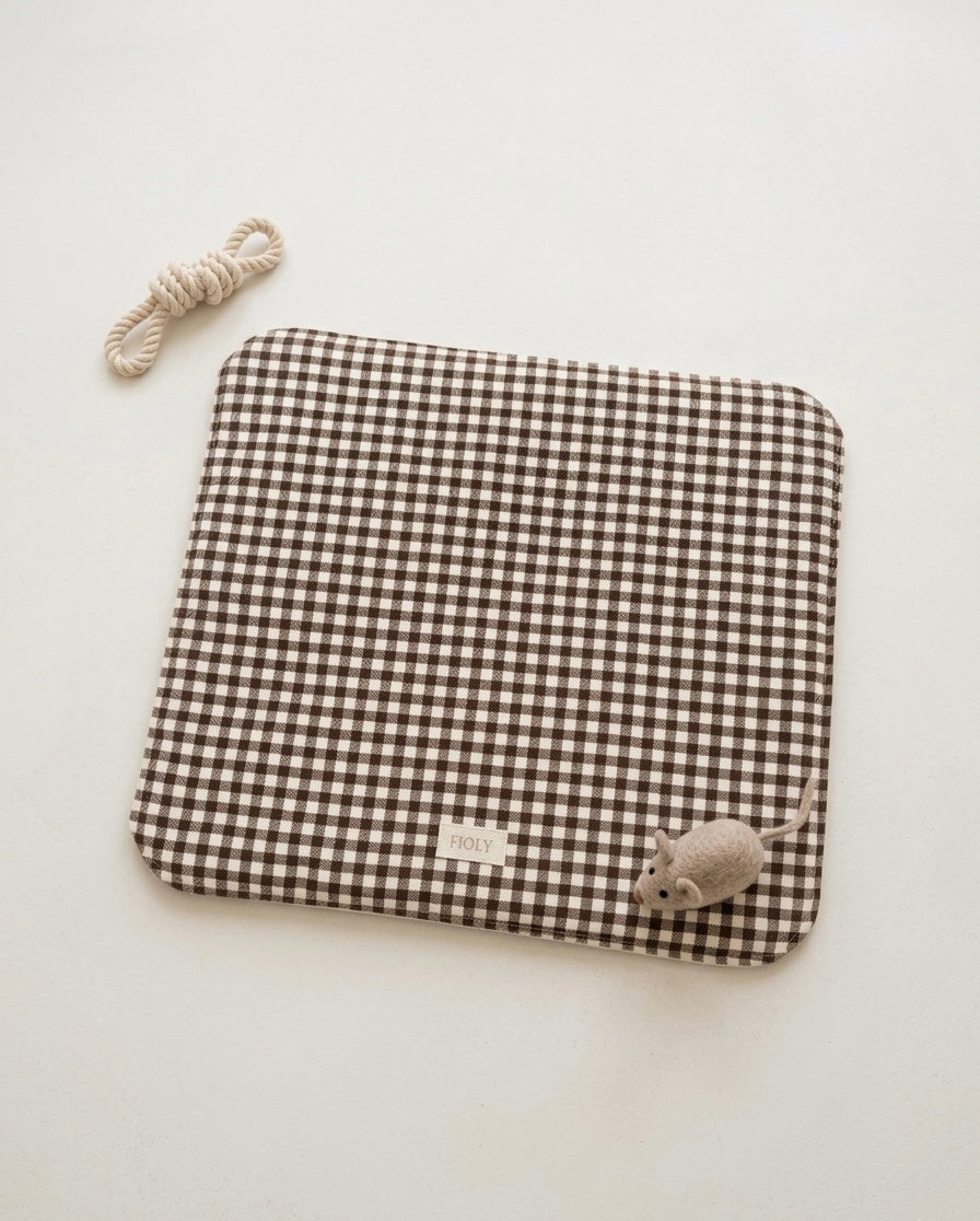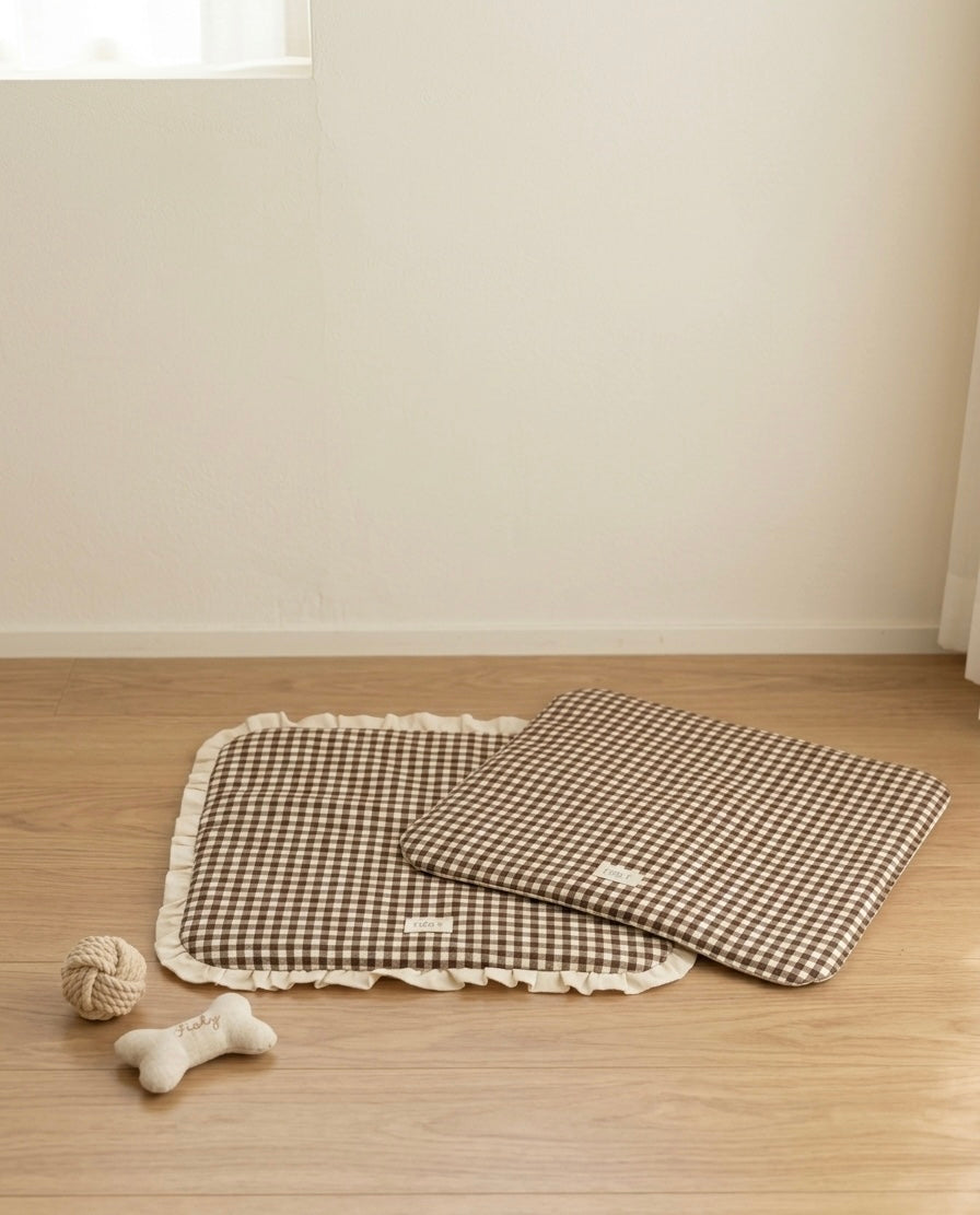 FIOLY カフェマット ギンガムチェック柄 ブラウン 全2色 フリルあり/なし|送料無料