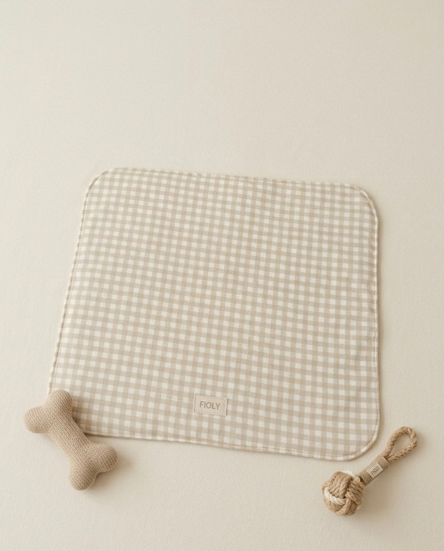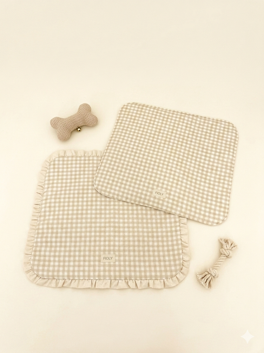 FIOLY カフェマット ギンガムチェック柄 ベージュ|綿100%・洗濯OK|フリルあり/なし|送料無料